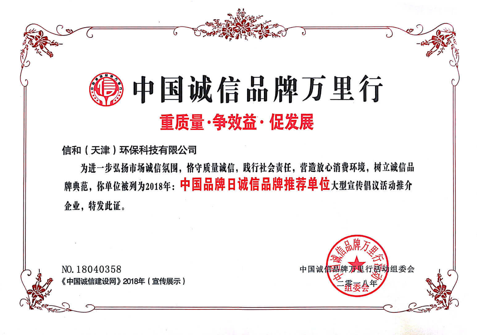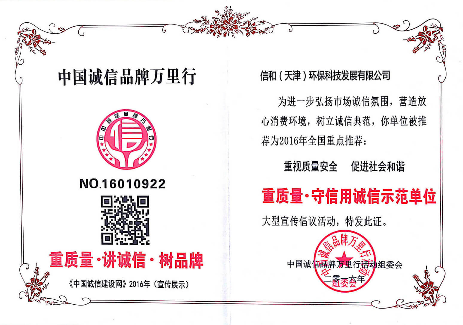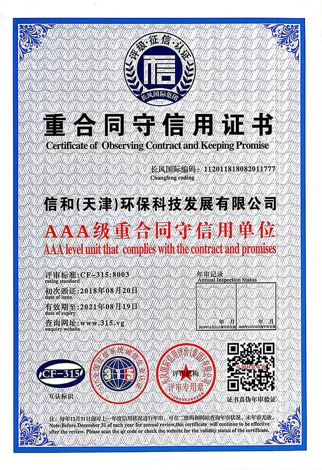 “質(zhì)量就是生命”。信和重質(zhì)量、守信用,被中國誠信品牌萬里行推薦“誠信示范單位”、“AAA資信等級”、“AAA級誠信經(jīng)營示范單位”、“誠信經(jīng)理人榮譽證書”、“誠信企業(yè)家榮譽證書”、“中國產(chǎn)品質(zhì)量放心達標(biāo)企業(yè)”、“誠信品牌聯(lián)盟會員單位”、“中國質(zhì)量誠信AAA級品牌企業(yè)”、“中國百強優(yōu)秀企業(yè)”、“節(jié)能環(huán)保推廣產(chǎn)品”、“全國科技創(chuàng)新企業(yè)”等榮譽稱號。